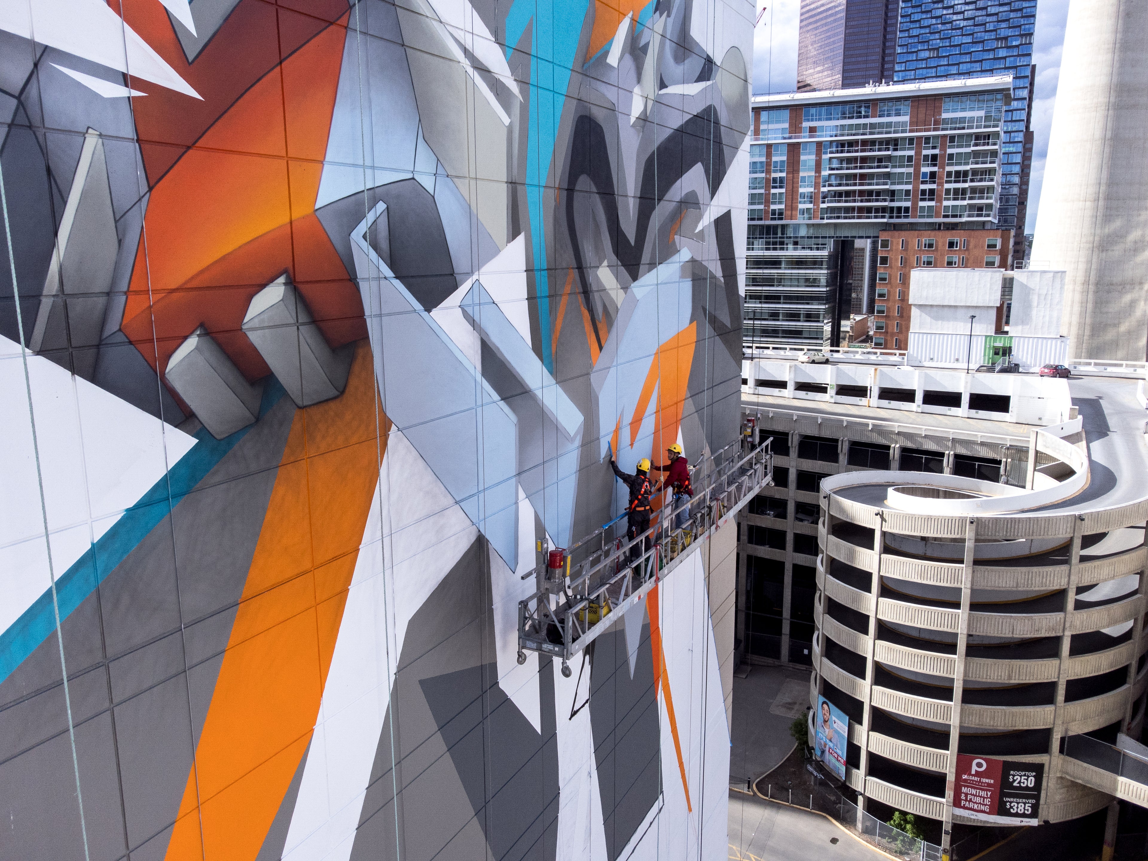 DAIM’s roots lie in graffiti art, he started hitting the streets in 1989 and is now world renowned and highly regarded by admirers, clients, collectors, and his peers for his incredible technique and precision. 2024 marked the 35th anniversary of his studio practice which was celebrated with a 35 years retrospective at the respected Woods Art Institute in Hamburg, Germany. DAIM holds the record for the world’s tallest mural (310 feet). The monumental work of art was commissioned by the Bump Festival in Calgary, Canada in 2022. His work has been exhibited in some of the top galleries and museums including the MACRO Museum Rome, Italy, Museum of Modern Art Bremen, Museum Marta Herford, Germany. In 2019 the Contemporary Art Center in Rouen, France featured a 30-year retrospective exhibition of his work. He has been commissioned and collaborated with high profile international corporations including Nike, DaimlerChrysler, Adidas, Volvo, Google and many more. 2014 marked the release of a 25-year retrospective monograph titled Mirko Reisser [DAIM] 1989-2014, by the respected Italian publishing house Drago. He has been featured in the books Cross the Streets by Drago, Addicted to Walls by author Anne Vieth, From Style Writing to Art by Magda Danysz, Still On And None the Wiser by Rik Reinking and many more. His work is nurtured from urban landscapes, while absorbing influences from printmaking, painting, and architecture. His geometric figures and letters obey the laws of light and shadow, but defy gravity and space, which ultimately results in transporting the beholder to new dimensions.